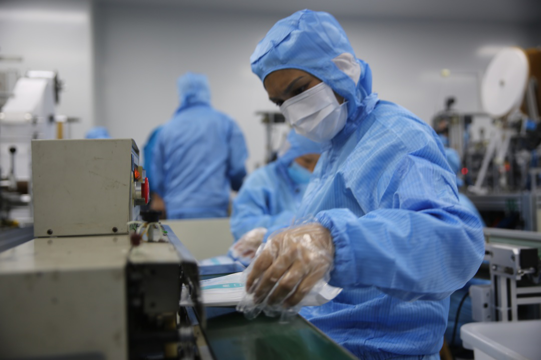 2月15日,东升国际集团新引进的口罩生产线全力开动,正式出产医用口罩产品。据悉,该批5条生产线满负荷运转后,日产口罩约50万片。此前的2月4日,东升国际集团联合晋江兴德织造有限公司启动了防护服生产,目前日均产能可达1000件。